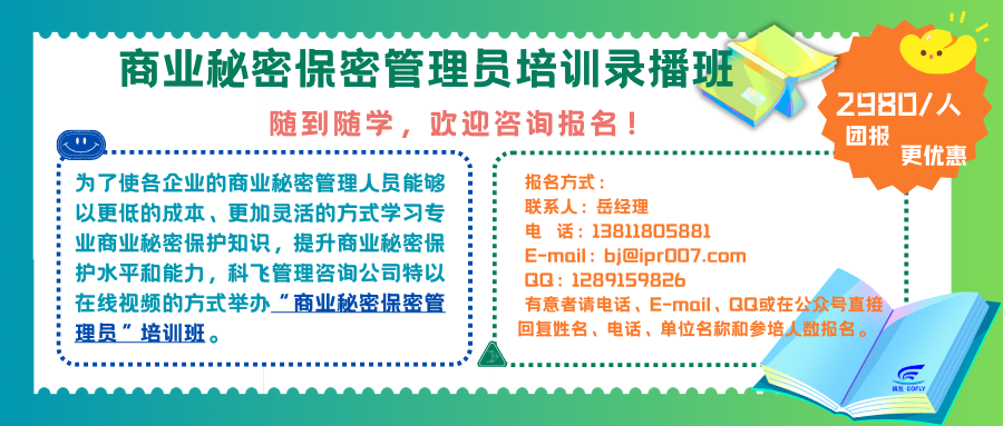 “商业秘密保密管理员培训”录播班火热进行中,随到随学!点击下方图片查看详情:
